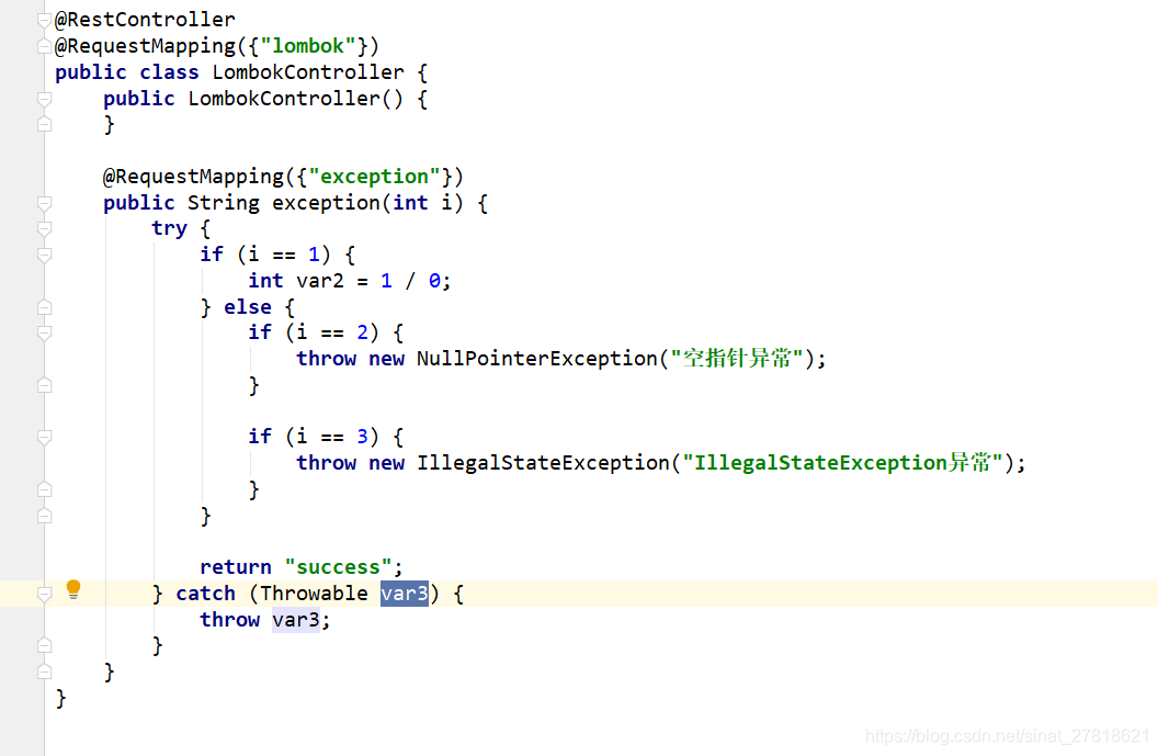 引入组件后,可以使用@SneakyThrows注解优化异常处理的代码,比如io异常我们一般一定要显示的try()catch{},然后可能需要在catch里面向上抛出异常,此时可以使用@SneakyThrows修饰在这个方法上,那么try()catch{}就可以省掉,代码简洁了许多;