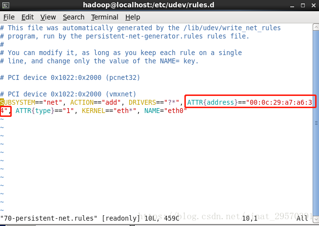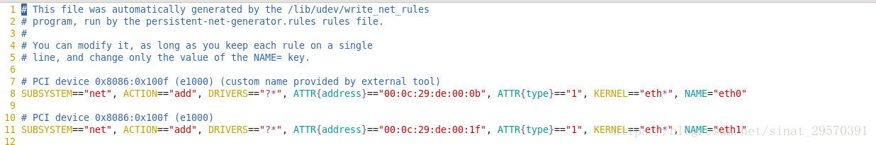 1、修改/etc/udev/rules.d/70-persistent-net.rules文件