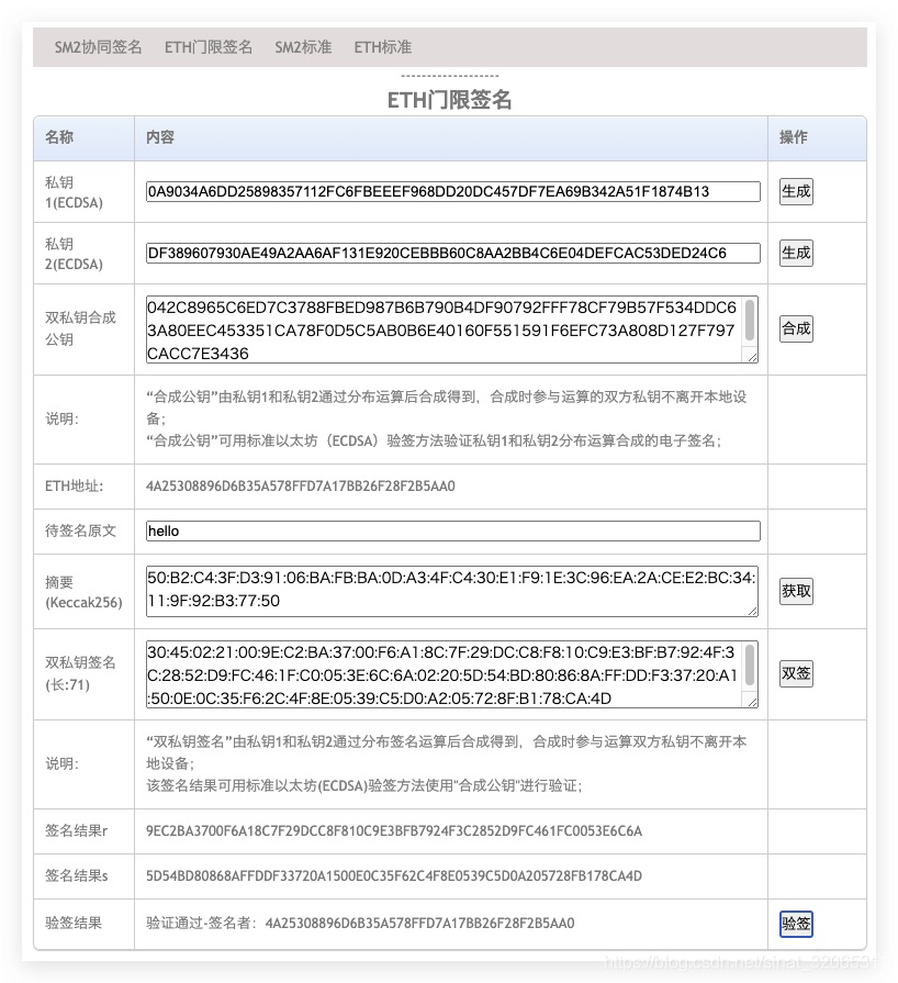 6.所有得到公钥的有用户都可以通过ECDSA验签方法验证用户A与用户B分布式运算得到的签名结果。