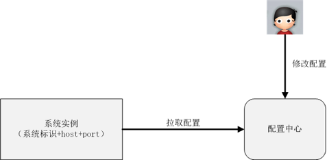 下面是配置中心简单的设计,其中通过“系统标识 + host + port”来标识唯一一个系统运行实例是常见的设计方法。