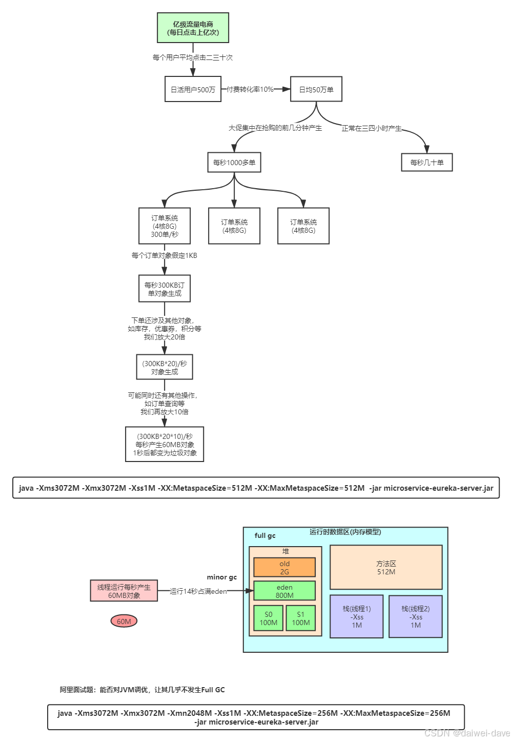 JVM参数大小设置并没有固定标准,需要根据实际项目情况分析,给大家举个例子