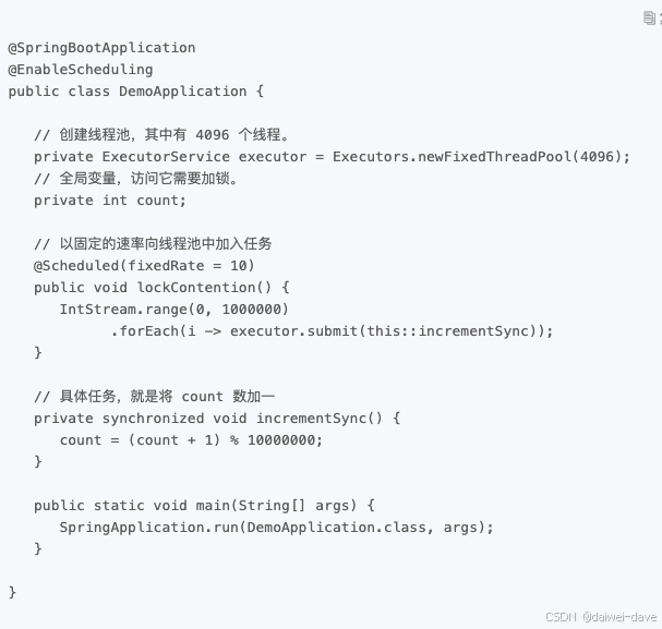 写一个模拟程序来模拟 CPU 使用率过高的问题,这个程序会在线程池中创建 4096 个线程。