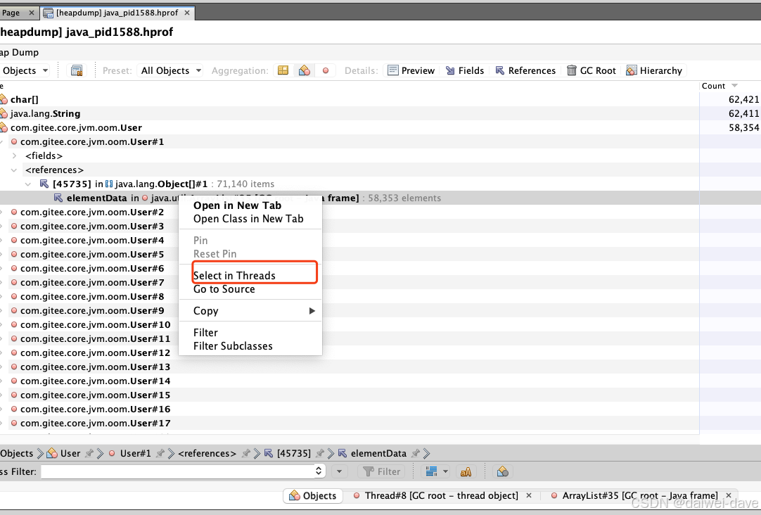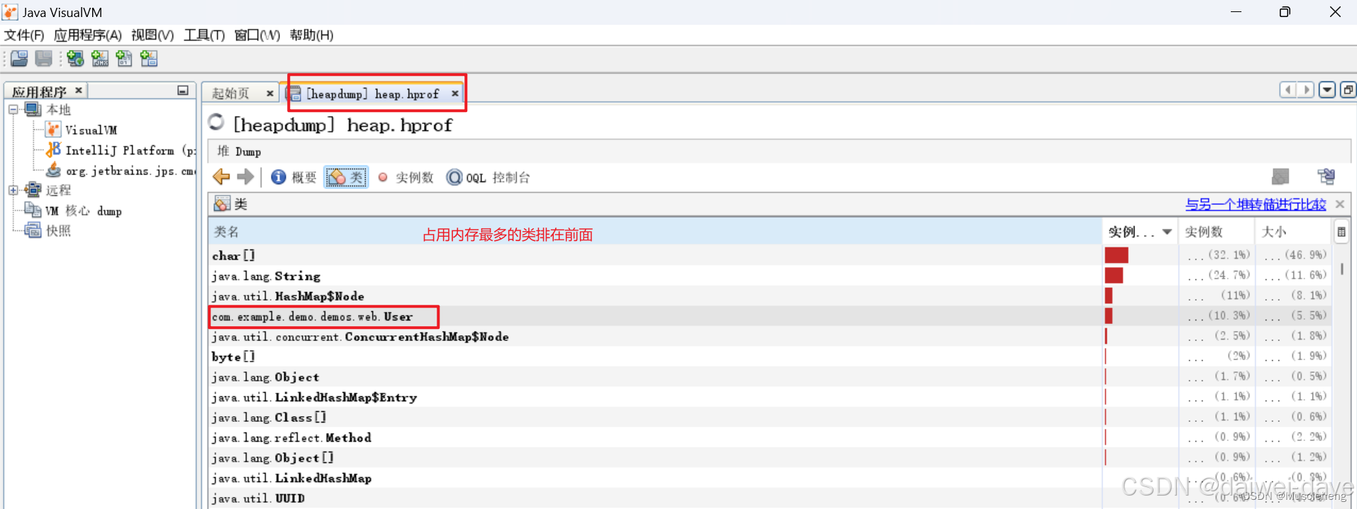 服务发生内存溢出,就需要查看服务器上Java服务的jvm堆内存使用情况,可以使用dump命令生成dump文件,然后下载到本地,然后使用jvisualVM工具打开,即可实现可视化分析。