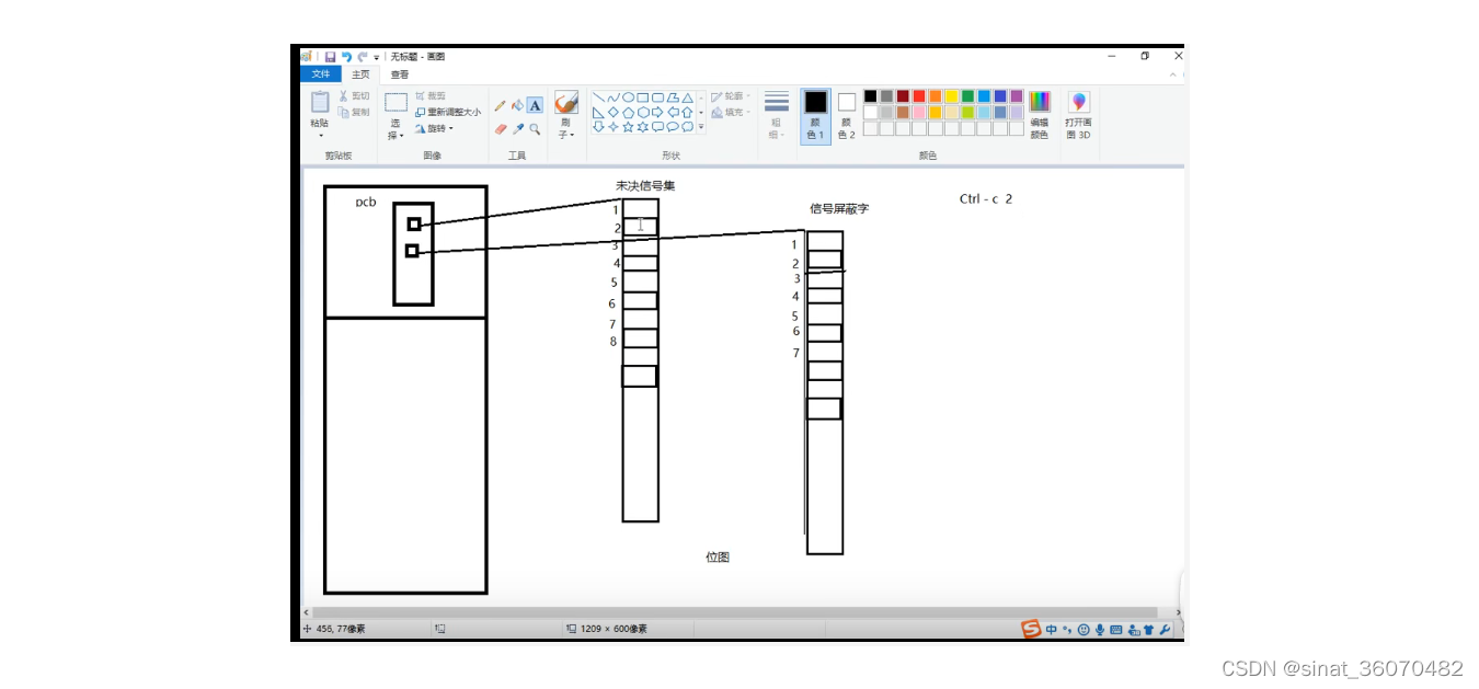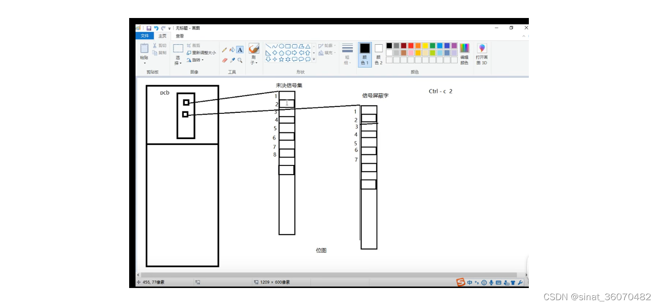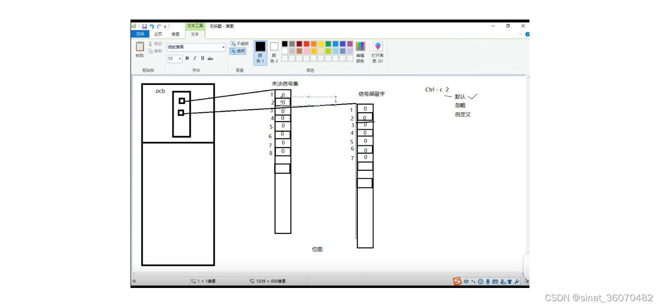 ctrl + c 会得到2号信号(终止信号)时候,2号信号的未决信号集为0->1(默认为0)