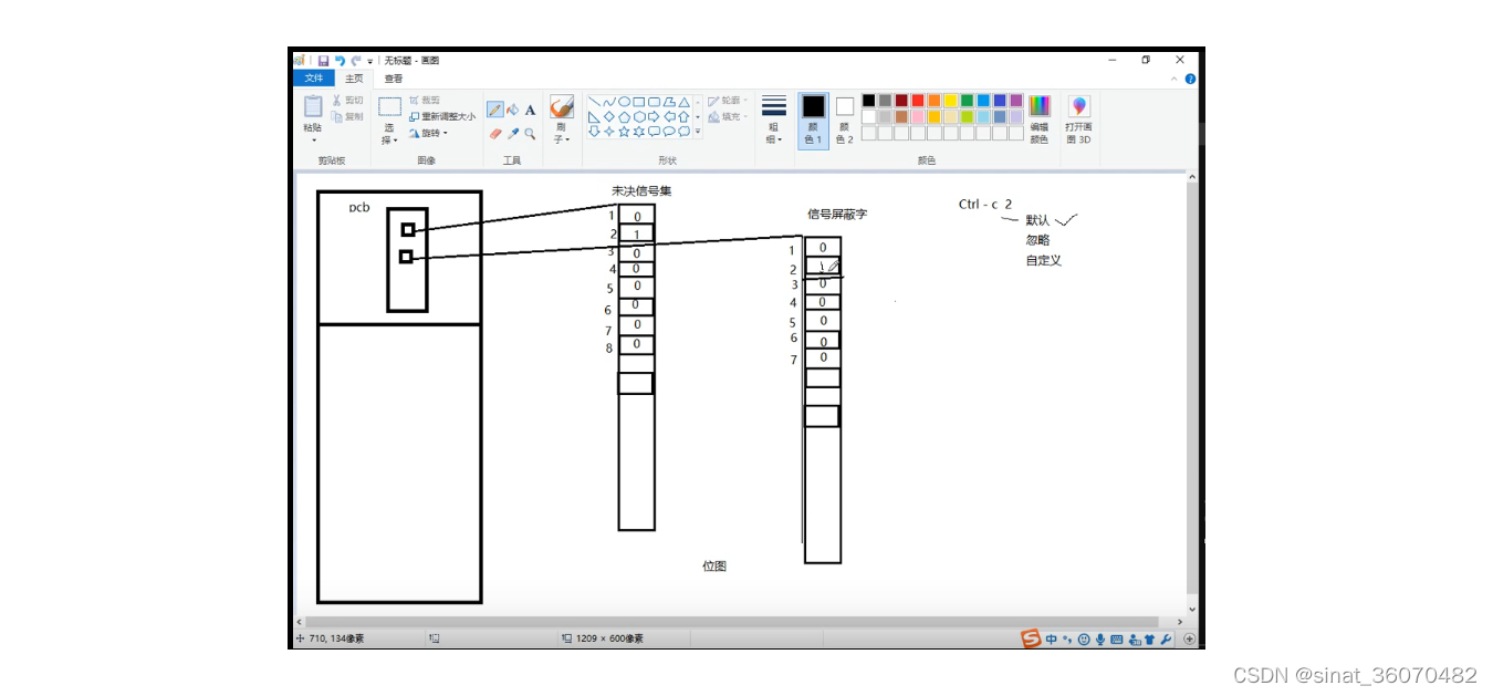 1.信号产生,未决信号集中描述该信号的位立刻翻转为1,表信号处于未决状态。当信号被处理对应位翻转回0.这一时刻往往非常短暂。
