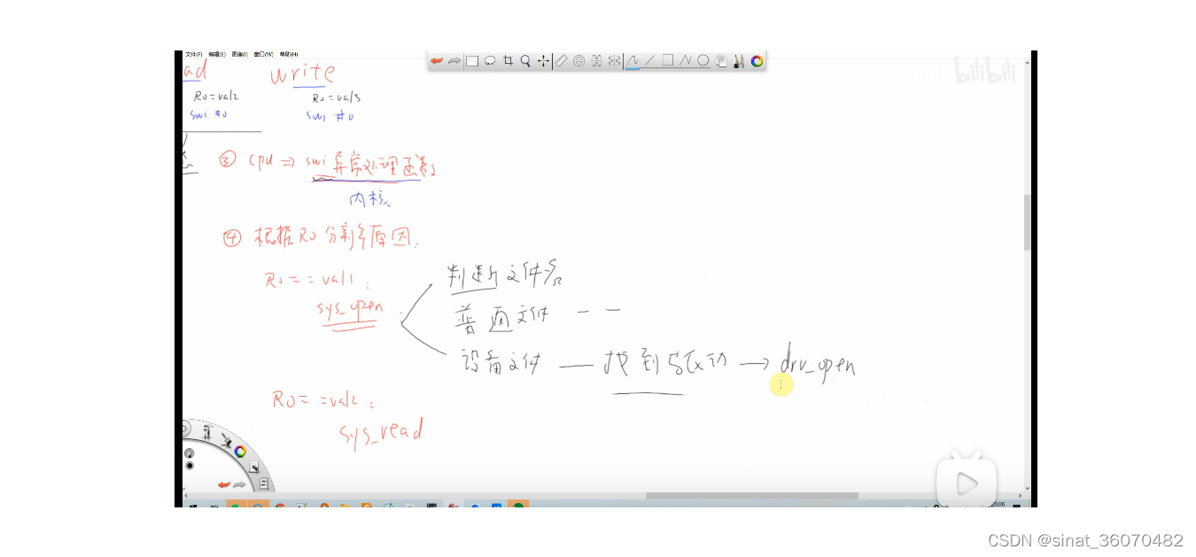 CPU就会进入到 swi异常处理函数(内核提供的)
