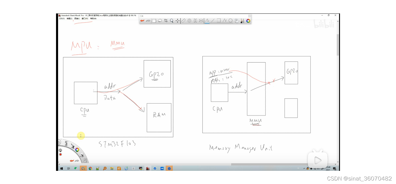 CPU发出的地址,到MMU,这个地址想去控制GPIO,