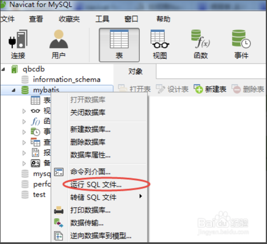 双击你新建的数据库,使之显示绿色状态。然后在该数据库的名称上面点击右键,选择运行Sql文件。