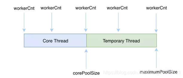 那核心线程数和最大线程数与工作线程个数的关系是什么呢?