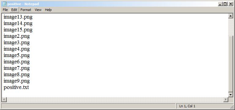 Thus a positive.txt file will be created in the folder opencv-positive-haar.