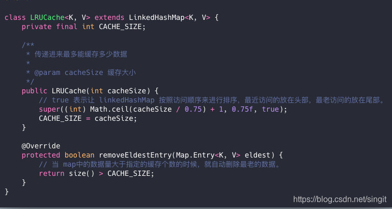 其实在大家熟悉的LinkedHashMap中也实现了Lru算法的,实现如下: