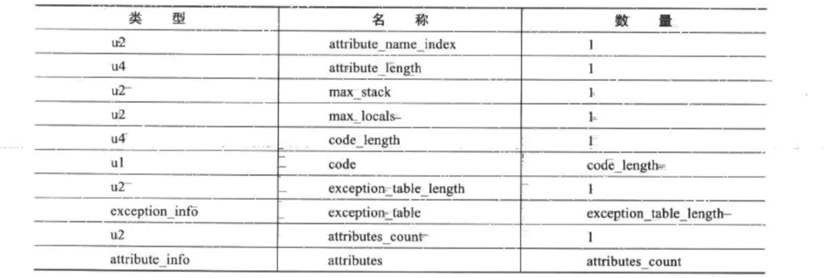 code_length和code用来存储Java源程序编译后生成的字节码长度和指令。