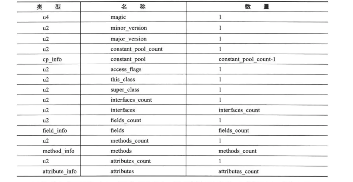 Class文件是一组以8字节为基础单位的二进制流,Class文件格式采用一种类似于C语言结构体的伪结构来存储数据。这种伪机构只有两种数据类型:无符号数和表。