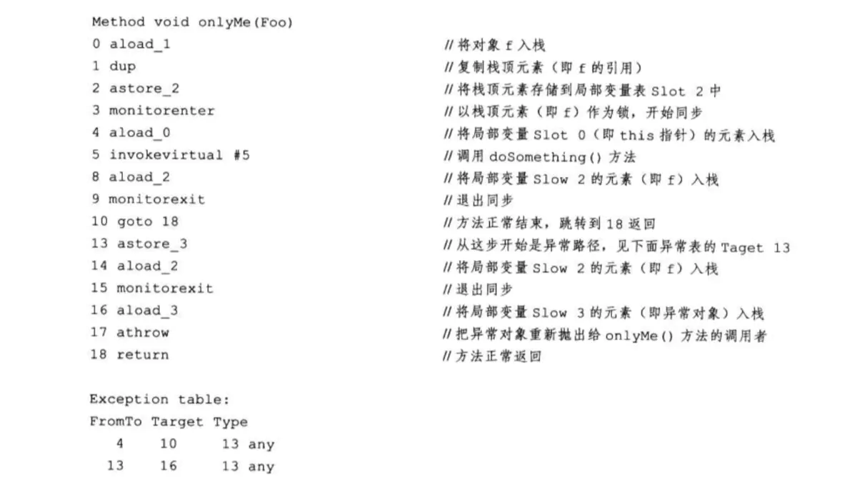 方法级的同步是隐式的,即无须通过字节码指令来控制,它实现方法调用和返回操作之中。虚拟机可以从方法常量池的方法表结构中的ACC_SYNCHRONIZED访问标志得知一个方法是否声明为同步方法。如果被设置了,执行线程就会先持有管程,方法完成(无论是正常完成还是非正常完成)时释放管程。在方法执行期间,其他任何线程无法再获取同一个管程。