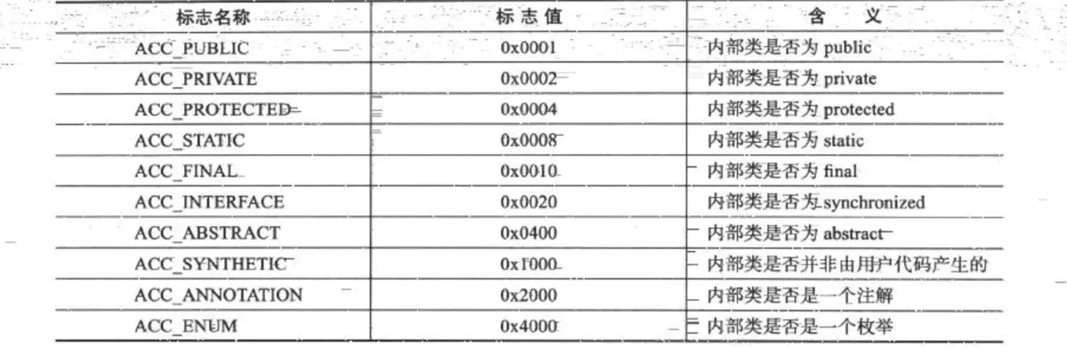 inner_class_access_flags是内部类的访问标志,类似于类的access_flags,取值范围如下: