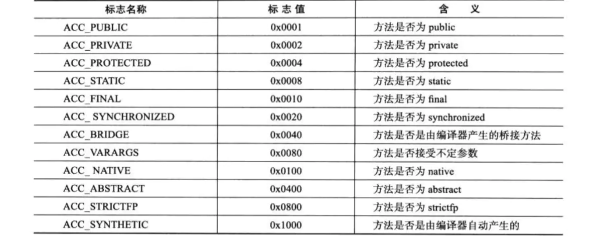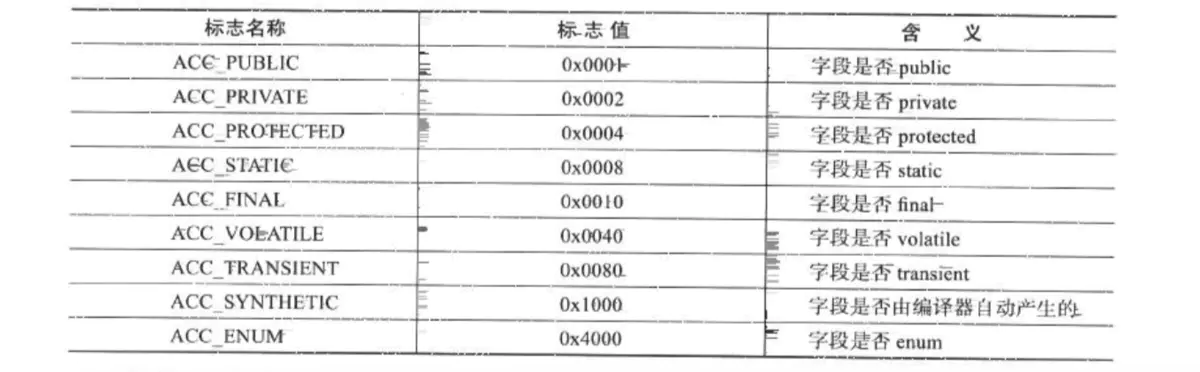 字段修饰符放在access_flas中,是一个u2的数据类型,可以设置的标志位和含义如下图: