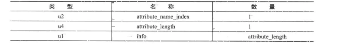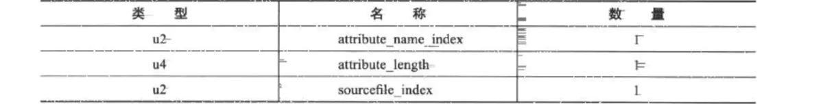 对于每个属性,它的名称需要从常量池中引用一个CONSTANT_Utf8_info类型的常量来表示,而属性值的结构是完全自定义的,只需要通过u4的长度属性说明属性值所占用的位数即可: