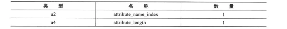 attribute_length指示了属性值的长度,由于属性名称索引与属性长度一共6字节,所以属性值的长度固定为整个属性表长度减去6个字节。