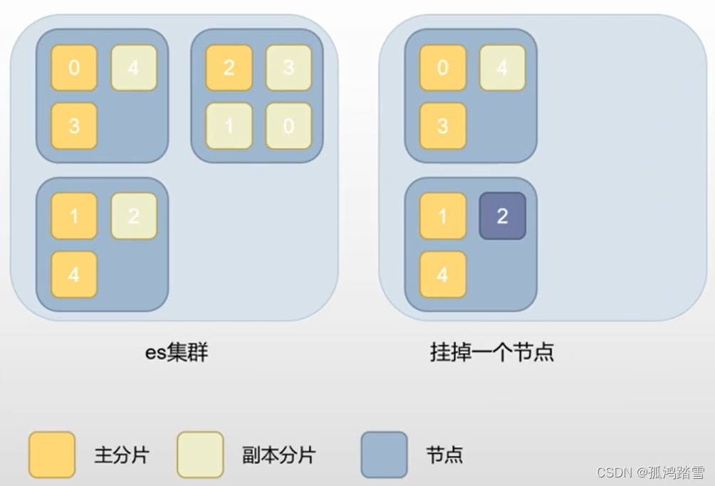 黄色。如果挂点n+1个节点,主分片将缺失,健康状态是红色。