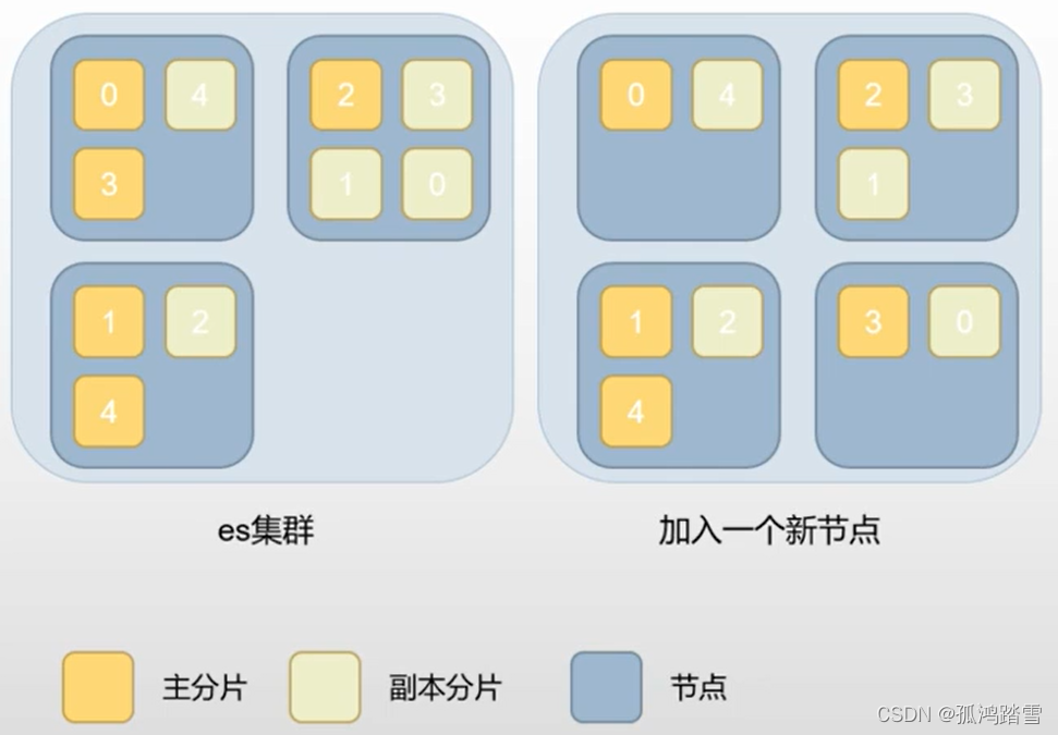 加入新节点后,原集群节点的分片,会部分迁移到新节点。