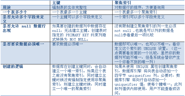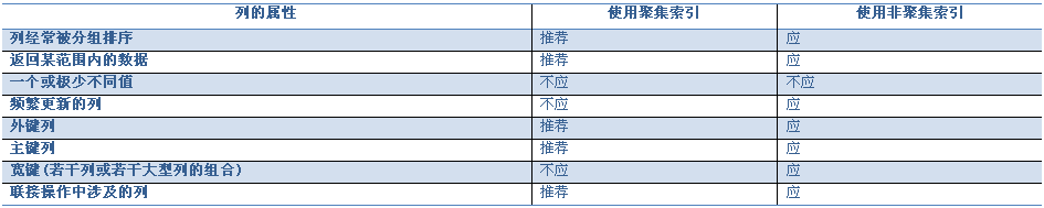 三、使用聚集索引或非聚集索引的场景 (注:优先级依次为推荐,应,不应)