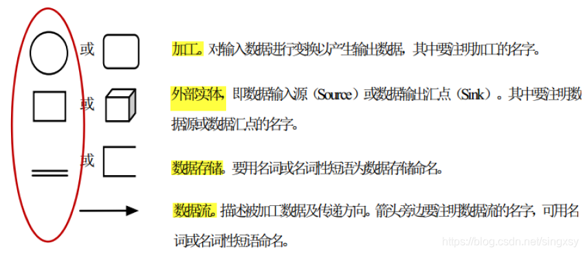 (1) 数据流图的组成元素中,数据流用于描述数据处理所需的输入或输出。