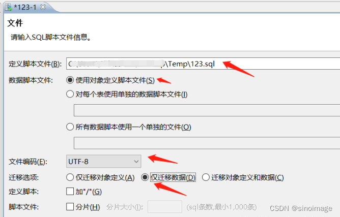 3、定义输出文件,本次仅导出数据,即Insert into 语句