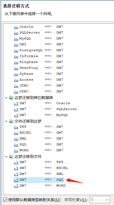 1、新建迁移,本例选择DM到SQL,即导出文件。