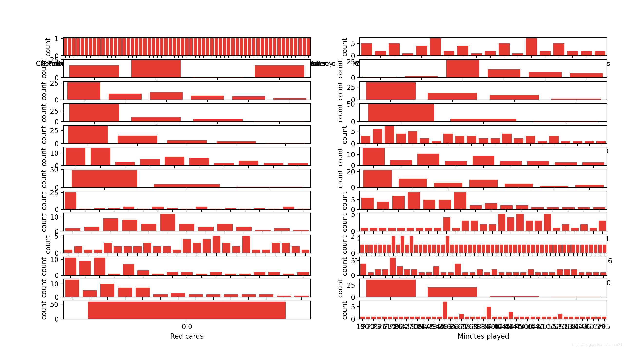 'Balls recovered', 'Tackels', 'Yellow cards', 'Red cards',
