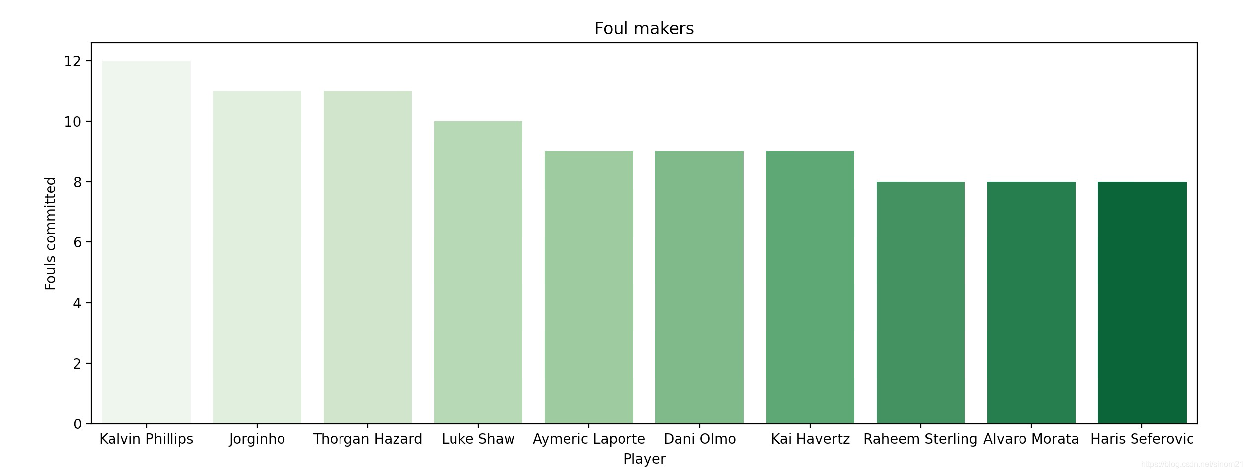 Foulers = train_df.sort_values(["Fouls committed"], ascending=False).iloc[:10]