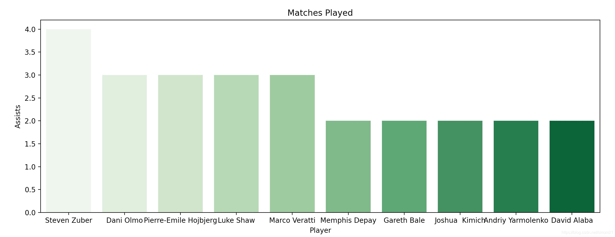 欧洲杯刚刚结束,就像看看有没有欧洲杯的数,分析下谁是本次欧洲杯表现最好的球员。于是我就上网找了一组数据。