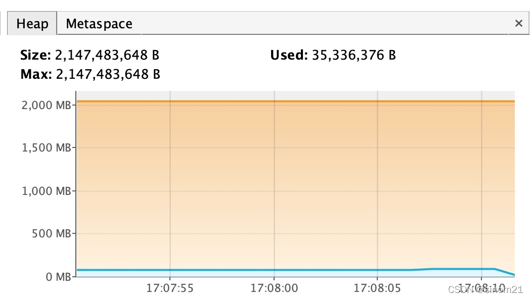 可以发现直接内存 heap空间与meta空间都是没有影响的,但是对应进程占用的内存是有直接影响的。