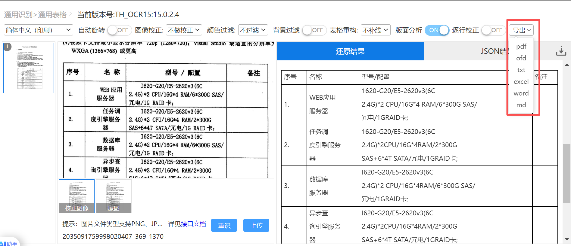 更重要的是,识别结果不仅可输出 Json、Pdf、Ofd、Excel、Word、Txt 等常见格式,