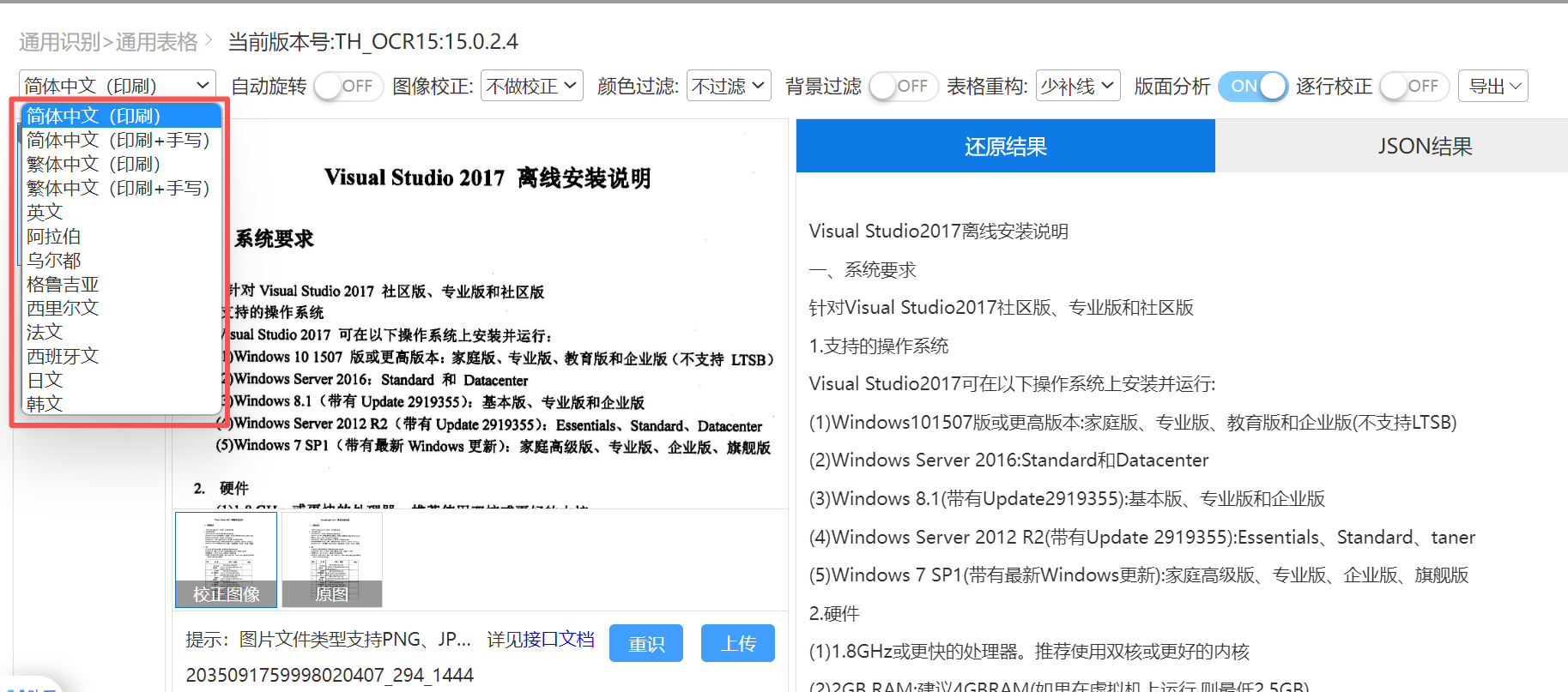 自适应图像预处理:自动纠偏、去噪、二值化、倾斜矫正,即使手机拍摄、扫描模糊的图片也能清晰识别;