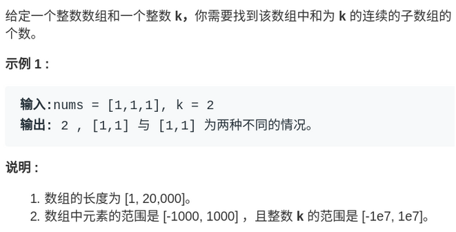 if sum[i] - sum[j] == k: # 当两个前缀和相减的值为K,则给计数器加1