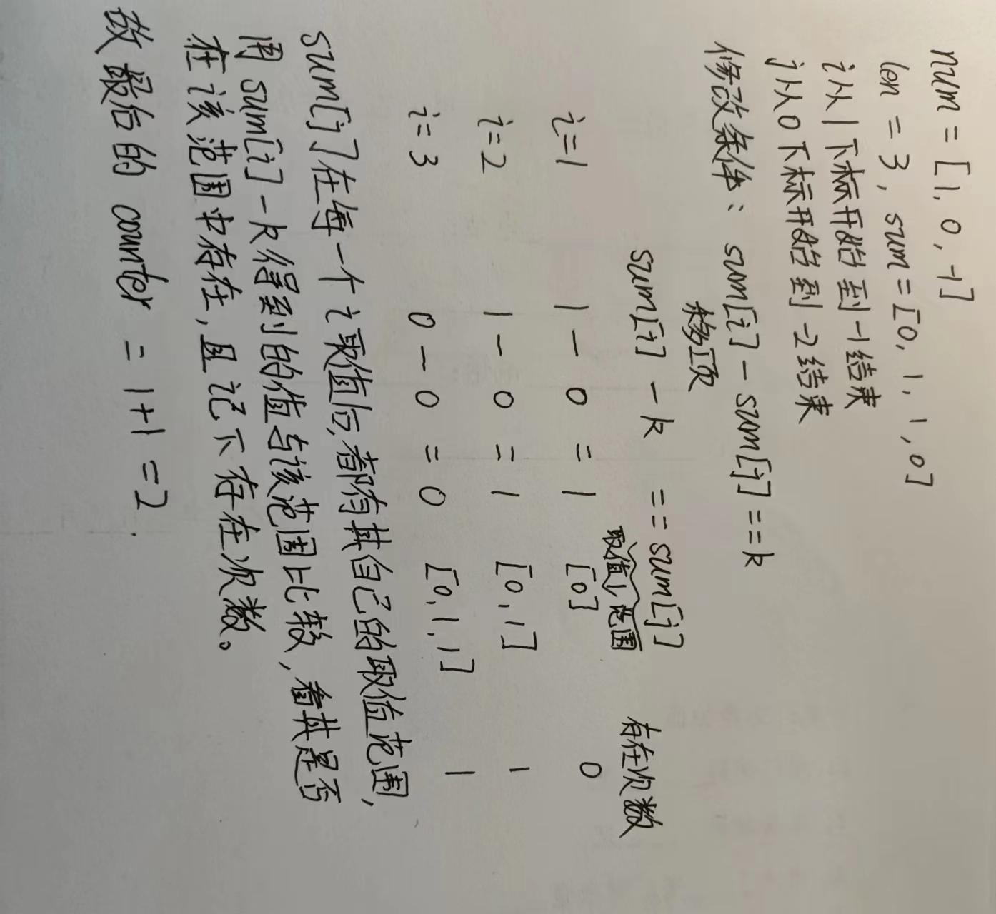counter = haxi[sum[i]-k] + counter #记下前缀和出现的次数