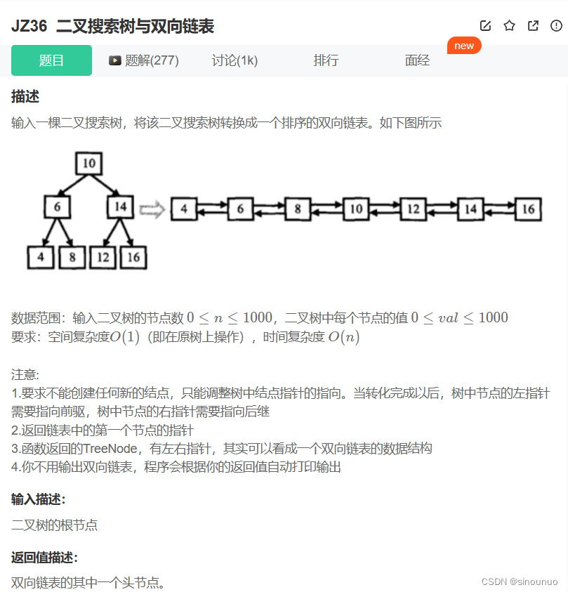 self.pre.right = pRootOfTree #前一个节点的值一定小于当前节点,用右指针指