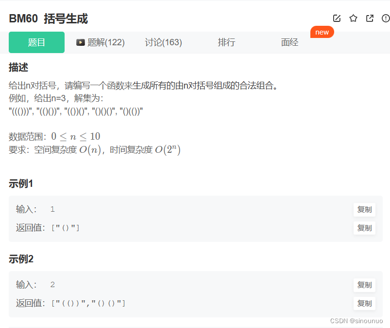 思路:n对括号相当于在2n个位置上放置左括号和右括号。所以每个位置上都有选左括号和选右括号的可能。当l<n时,当前位置可以选左括号,当r<l时,当前位置也可以选择右括号。