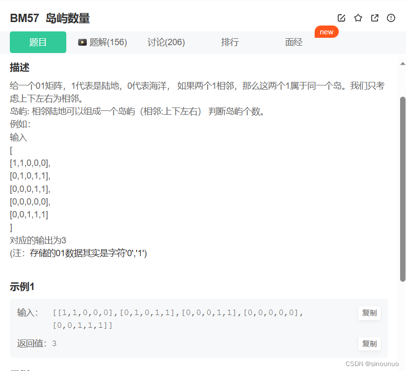 思路:遍历二维数组,遇到1之后,就先给答案加1,然后进入递归,将1的上下左右都换成0,避免之后再进入。最后输出答案。