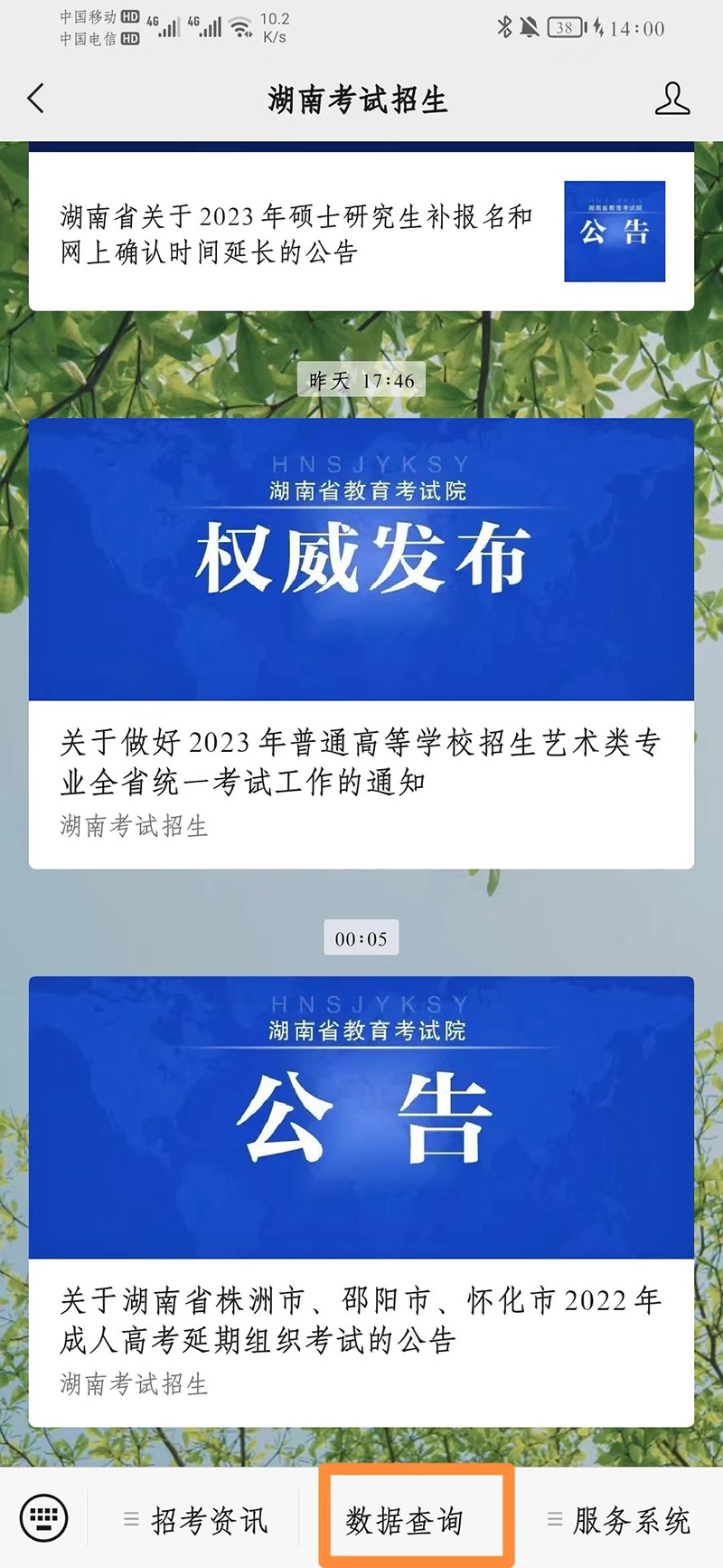 1、考生用手机微信搜索“湖南考试招生”微信公众号