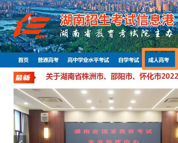 1、考生打开“湖南招生考试信息港”官网首页,点击首页的“成人高考”