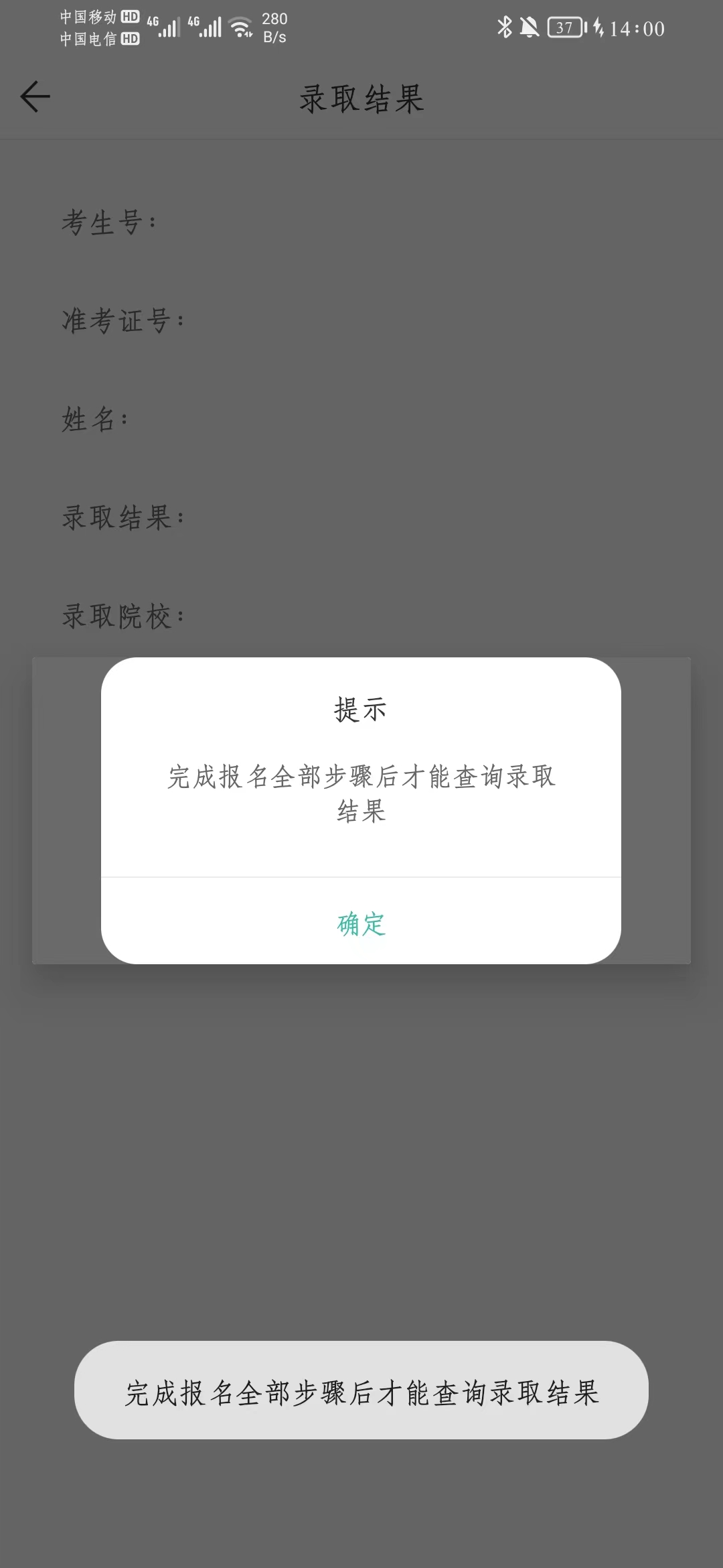 注意:成考考生查询录取结果时,必须输入正确的信息,不得输入有误的身份证号码、考生号以及准考证号,否则将导致录取状态查询失败。