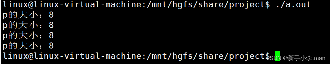 指针变量也是变量,既然是变量,那就会在内存中分配空间,所以指针变量的大小是多少呢?我直接说明,任何类型的的指针变量的在64位操作系统下是8个字节,在32位操作系统下,4个字节。指针的大小和类型没有关系,可以验证一下: