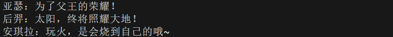 cout << name << ":为了父王的荣耀!" << endl;