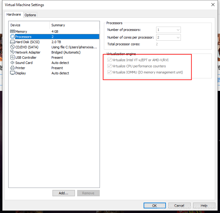- 需要配置虚拟机处理器设置,全部打开
