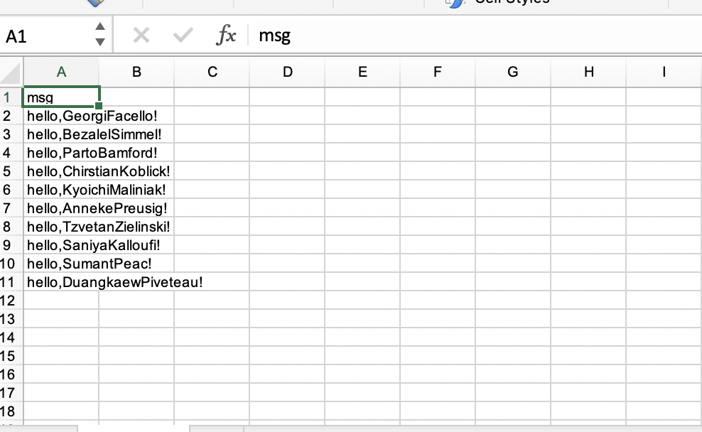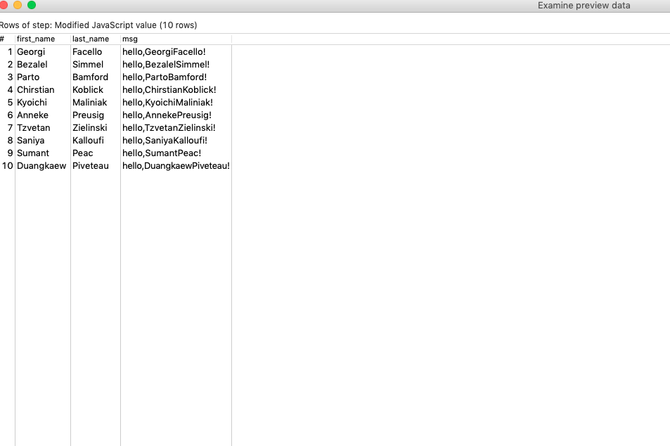 那么这个helloworld就是针对数据库中的每个人名输出对应的gretting并导出为文件。