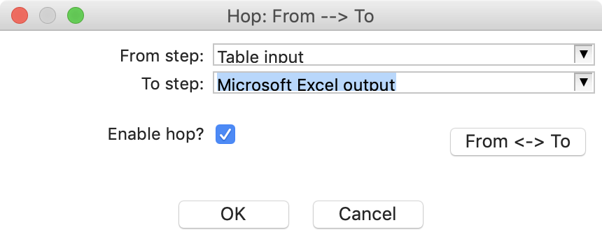 设置完输入源 同理将输出源选择excel拖到工作界面,但是先别急着配置输出源,在view栏,添加一个hop,用来连接输入和输出源