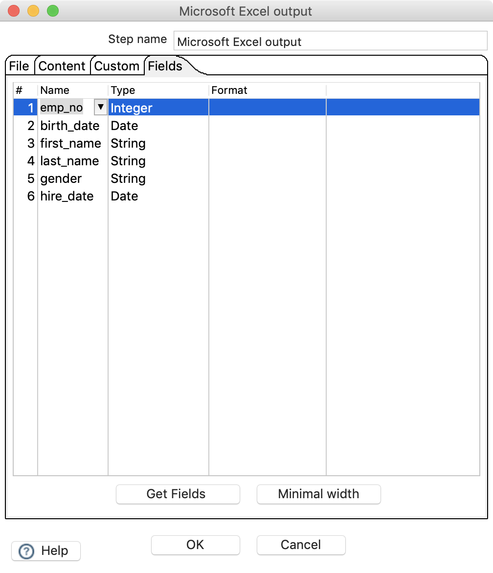 这样在配置输出源的时候,在字段的tab就可以直接获取选择要导出的字段