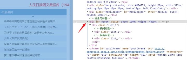 比如我们要获取上图中箭头所指的,id 为 ozoom 的 div 标签时,我们可以这样: