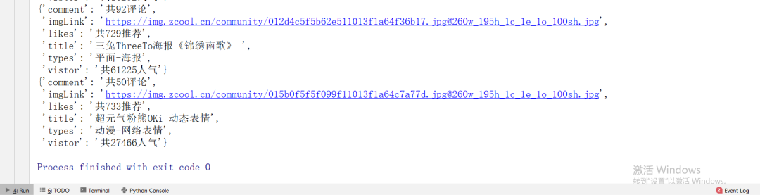 item = ZcoolItem(imgLink=imgLink,title=title,types=types,vistor=vistor,comment=comment,likes=likes)